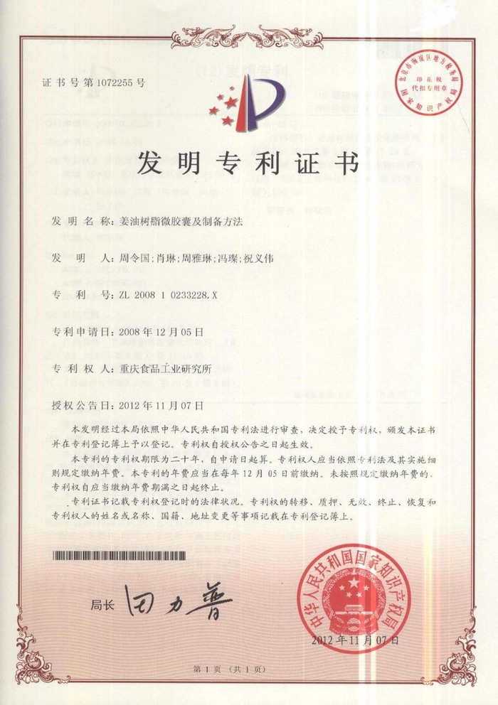 發(fā)明專利證書