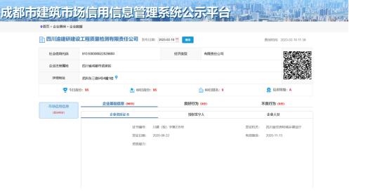根據(jù)2021年印發(fā)的《成都市建設(shè)工程質(zhì)量檢測機(jī)構(gòu)及檢測人員信用評價(jià)管理辦法》,成都市建筑市場信用信息公示平臺綜合考慮檢驗(yàn)檢測機(jī)構(gòu)在經(jīng)營期間各項(xiàng)表現(xiàn),對獲得表彰、人員管理、設(shè)備管理、檢驗(yàn)檢測環(huán)境管理、檢測能力驗(yàn)證、檢測報(bào)告管理、資質(zhì)運(yùn)行等26個(gè)項(xiàng)目進(jìn)行評價(jià),力求全面客觀評價(jià)檢驗(yàn)檢測機(jī)構(gòu)綜合能力。信用評級結(jié)果分為4類,最高等級為A類,表示誠信度較高、各項(xiàng)評價(jià)指標(biāo)較好、質(zhì)量管理水平較好、社會信譽(yù)較高。