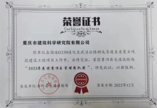 國(guó)道G230通武線項(xiàng)目,投資總估算約為13.36億元,全長(zhǎng)5.3公里,全線采用雙向六車道一級(jí)公路標(biāo)準(zhǔn)建設(shè),設(shè)計(jì)速度80公里/小時(shí),全線設(shè)特大橋1座。2022年6月20日正式開工建設(shè)以來(lái),市建科院始終堅(jiān)持高效統(tǒng)籌、科學(xué)調(diào)度,在保證質(zhì)量和安全的前提下,督促項(xiàng)目監(jiān)理部切實(shí)發(fā)揮監(jiān)理職能,要求總承包項(xiàng)目部?jī)?yōu)化施工組織,協(xié)助政府相關(guān)部門強(qiáng)化拆遷調(diào)度,為項(xiàng)目質(zhì)量、安全和投資年度目標(biāo)的實(shí)現(xiàn)打下夯實(shí)的基礎(chǔ),截止目前已完成投資約5.05億元,實(shí)現(xiàn)安全生產(chǎn)“零”事故,并獲得主管部門頒發(fā)的2022年度“優(yōu)秀項(xiàng)目管理團(tuán)隊(duì)獎(jiǎng)”。