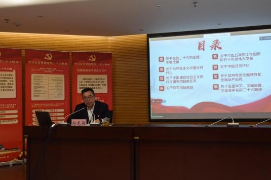 活動(dòng)現(xiàn)場(chǎng),市建科院公司黨委書(shū)記、董事長(zhǎng)冉龍彬,聚焦深入學(xué)習(xí)貫徹黨的二十大精神,以《全面學(xué)習(xí)、全面把握、全面落實(shí)黨的二十大精神》為題,面向公司廣大黨員干部及生產(chǎn)經(jīng)營(yíng)一線職工,作了精彩而生動(dòng)的宣講報(bào)告。