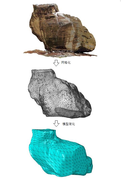 在對紗帽石穩(wěn)定性進行評估過程中,市建科院技術(shù)團隊與重慶交通大學(xué)相關(guān)專家經(jīng)過多次溝通,確定了定性分析+數(shù)值模擬的評估方案。評估中定性分析了紗帽石的當(dāng)前所處環(huán)境、形態(tài)特征、結(jié)構(gòu)特征、破壞模式等,作出紗帽石穩(wěn)定性定性分析初步評價。另外,評估采用三維激光掃描儀,對紗帽石進行3D掃描,復(fù)原出紗帽石的三維模型,再將其導(dǎo)入有限元計算軟件中,建立含有紗帽石的邊坡模型,對其在多種荷載工況下的穩(wěn)定性進行了有限元計算,最終提出了合理的評估和建議。