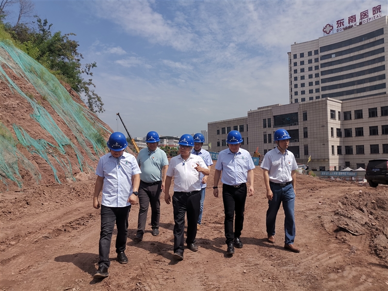 慰問結(jié)束后,冉龍彬董事長一行深入項目現(xiàn)場,詳細了解項目推進情況、存在的困難和下一步工作計劃,就進一步提升項目質(zhì)量、切實抓好安全生產(chǎn)作出重要部署。他強調(diào),一是要充分發(fā)揮代建引領作用,壓實各參建主體責任,強化現(xiàn)場安全管理,尤其要重視近期高溫、雷雨天氣交替對土石方施工的安全風險研判,提前謀劃,防范隱患事故發(fā)生;二是要堅持服務至上理念,科學管理、主動作為推動項目建設,用工匠精神打造品質(zhì)服務,展現(xiàn)“建科項管”服務特色;三是要善于識變、勇于求變,強化跨界交流與學習,實現(xiàn)公司打造高品質(zhì)醫(yī)院建設項目管理經(jīng)驗的高度集成,將專業(yè)做精、把板塊做強;四是要解放思想,拓寬經(jīng)營思路,以既有項目為依托,整合公司技術(shù)資源,深度挖掘延伸性服務潛力,為客戶提供全要素服務。