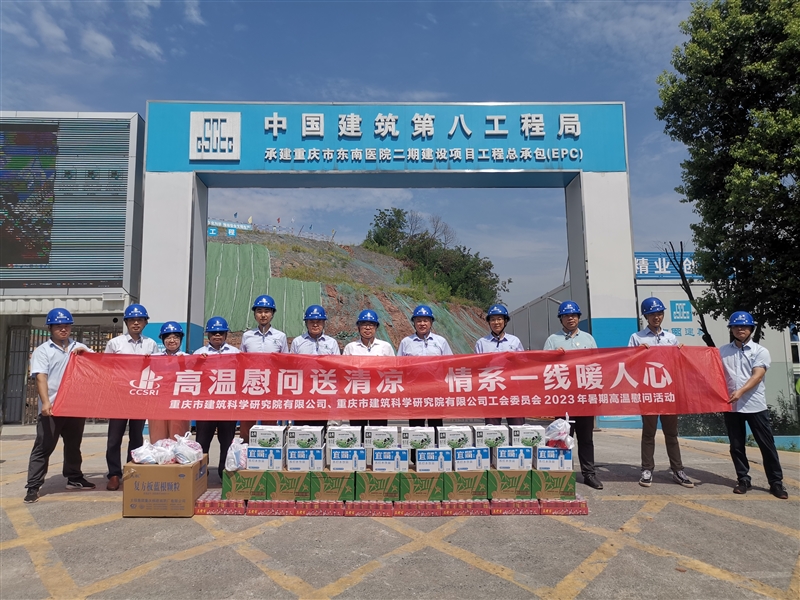 夏日炎炎,高溫酷暑。8月4日上午,重慶設計集團所屬子企業(yè)重慶市建筑科學研究院有限公司黨委書記、董事長冉龍彬帶隊赴監(jiān)理咨詢二公司代建的“重慶市東南醫(yī)院二期”項目慰問堅守在項目管理一線的職工,為他們送去清涼與關(guān)懷,指導并助推項目建設。黨委辦公室、技術(shù)質(zhì)量安全部和生產(chǎn)經(jīng)營發(fā)展部相關(guān)人員陪同慰問。
