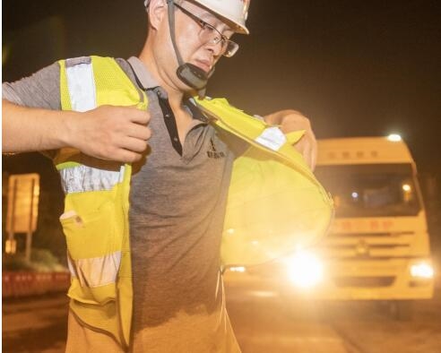 凌晨項(xiàng)目現(xiàn)場(chǎng),職工王俊工作服全部汗?jié)?