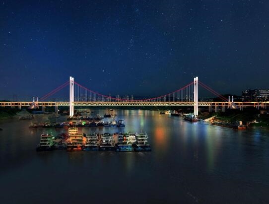 黃桷沱長(zhǎng)江大橋?yàn)橹貞c快速路八聯(lián)絡(luò)線咽喉要道,大橋全長(zhǎng)1260m,為單跨懸吊雙塔三跨連續(xù)鋼桁梁懸索橋,采用雙層橋面布置,上層為雙向6車道城市快速路,下層中央預(yù)留雙向軌道,兩側(cè)為雙向4車道城市主干路,為世界在建最大跨徑路軌兩用懸索橋,也是市建科院公司承接的重大監(jiān)理項(xiàng)目之一。