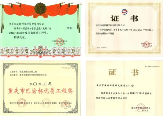 國家優(yōu)質(zhì)工程獎設(shè)立于1981年,是經(jīng)國務(wù)院確認的我國工程建設(shè)領(lǐng)域設(shè)立最早、規(guī)格最高,跨行業(yè)、跨專業(yè)的國家級質(zhì)量獎,除獲此獎項外,蔡家嘉陵江大橋還曾獲得市政工程最高質(zhì)量水平評價(原國家市政工程金獎)、重慶市市政工程金杯獎、三峽杯優(yōu)質(zhì)結(jié)構(gòu)工程獎、巴渝杯優(yōu)質(zhì)結(jié)構(gòu)工程獎等多項榮譽,樹立起建橋豐碑。