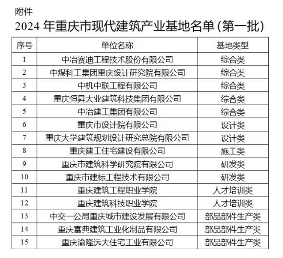 近日,重慶設(shè)計集團所屬子企業(yè)重慶市建筑科學(xué)研究院有限公司(簡稱“市建科院”)獲批“重慶市現(xiàn)代建筑產(chǎn)業(yè)基地”(研發(fā)類)。