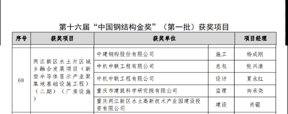4月24日,重慶設(shè)計(jì)集團(tuán)所屬子企業(yè)重慶市建筑科學(xué)研究院有限公司監(jiān)理的兩江新區(qū)水土片區(qū)城鄉(xiāng)融合發(fā)展項(xiàng)目(二期)榮獲中國(guó)建筑鋼結(jié)構(gòu)行業(yè)工程質(zhì)量的最高榮譽(yù)獎(jiǎng)——中國(guó)鋼結(jié)構(gòu)金獎(jiǎng)。