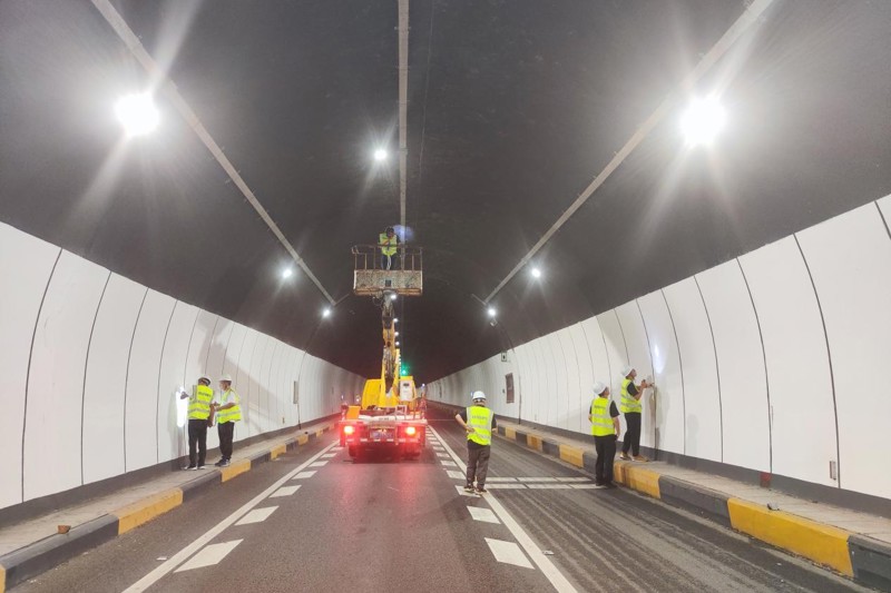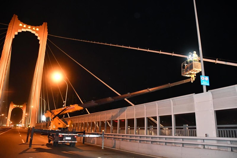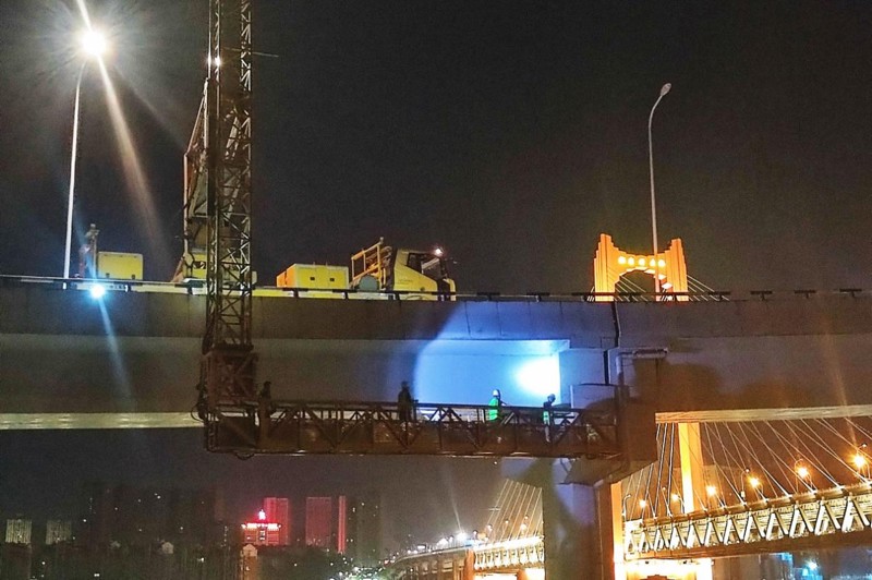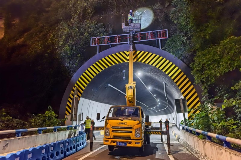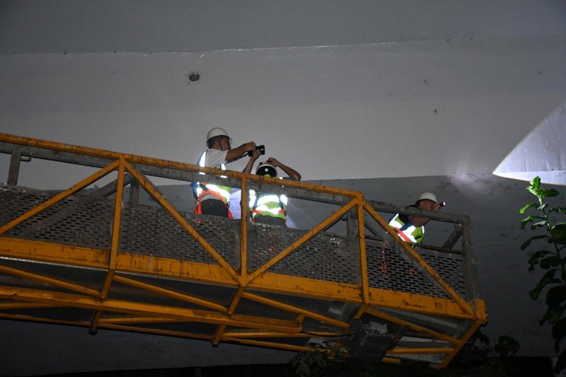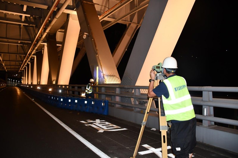 (檢測團隊在夜間對橋隧進行檢測工作 )