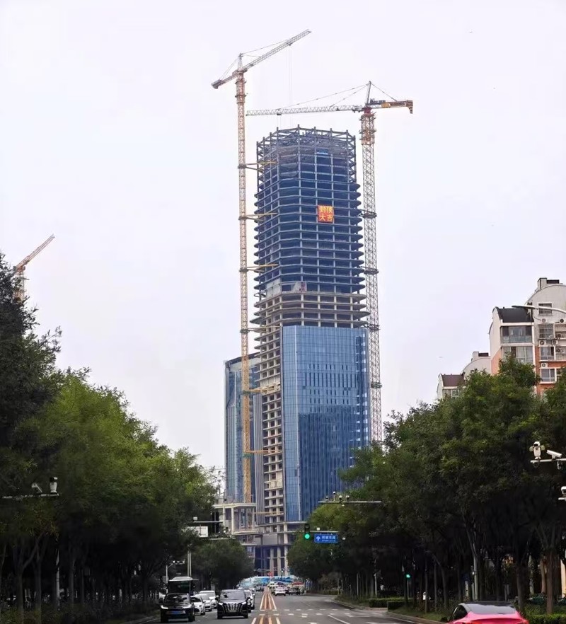 (高度達(dá)249.9米的超甲級濱水寫字樓運河天璽鋼結(jié)構(gòu)封頂)