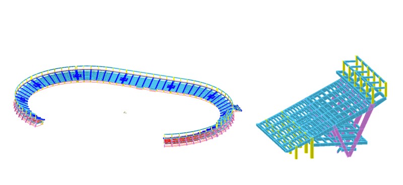 市建科院檢測團隊著重對體育場看臺、主席臺、球員通道、觀眾出入口等區(qū)域展開了實時檢測,重點排查了裂縫、露筋等潛在風險隱患。檢測團隊利用3D3S鋼結構分析軟件,建立三維計算模型,模擬賽事期間人員荷載、風雨荷載等工況,計算網(wǎng)架承載能力與整體穩(wěn)定性,并聚焦看臺梁板、立柱等核心承重構件,結合現(xiàn)場檢測數(shù)據(jù),運用PKPM結構設計軟件進行承載力復核。經(jīng)過連續(xù)高強度作業(yè),檢測團隊如期完成全部檢測與分析工作,并準時提交鑒定報告。