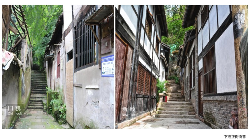 龍門浩老街的建筑依山而建,有著近50米的高低落差,是重慶市最具山地特色的傳統(tǒng)歷史街區(qū)。2017年,重慶市南岸區(qū)啟動(dòng)了龍門浩老街的保護(hù)與修繕工作。2021年4月,南岸區(qū)啟動(dòng)建設(shè)拓展區(qū)(下浩里)修繕工作,并根據(jù)老街歷史文化特性進(jìn)行業(yè)態(tài)布局,將龍門浩老街打造成兼具歷史文化底蘊(yùn)與現(xiàn)代時(shí)尚元素的新街區(qū)。