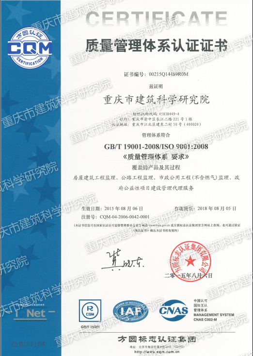 質(zhì)量管理體系認(rèn)證證書(shū)