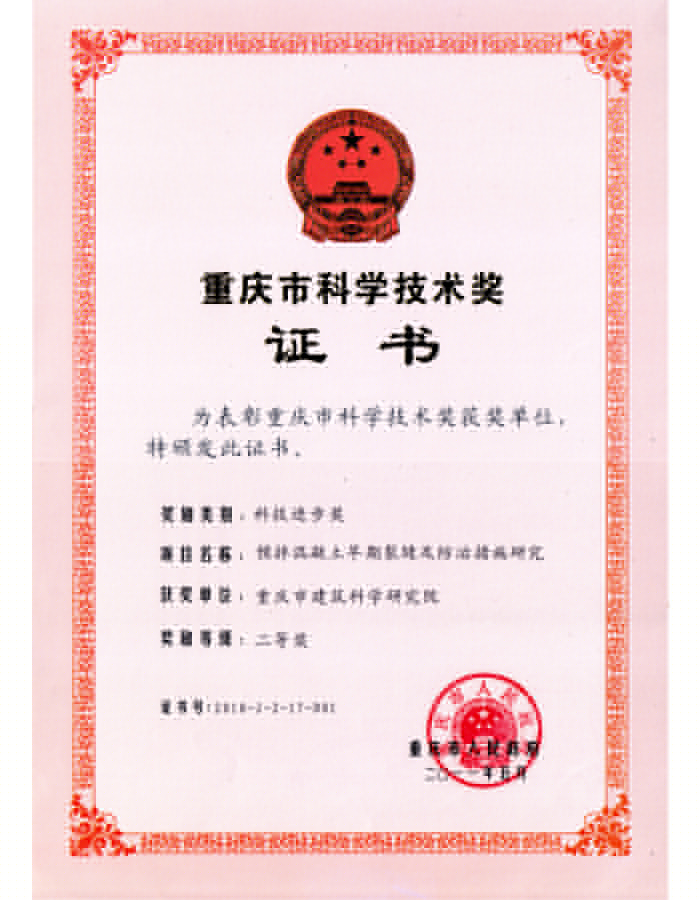 • 重慶市科技進(jìn)步二等獎