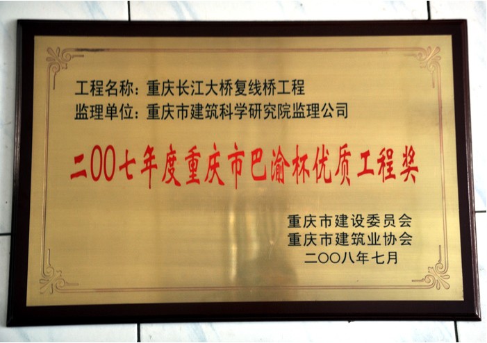 • 2007年度重慶市“巴渝杯”優(yōu)質(zhì)工程獎